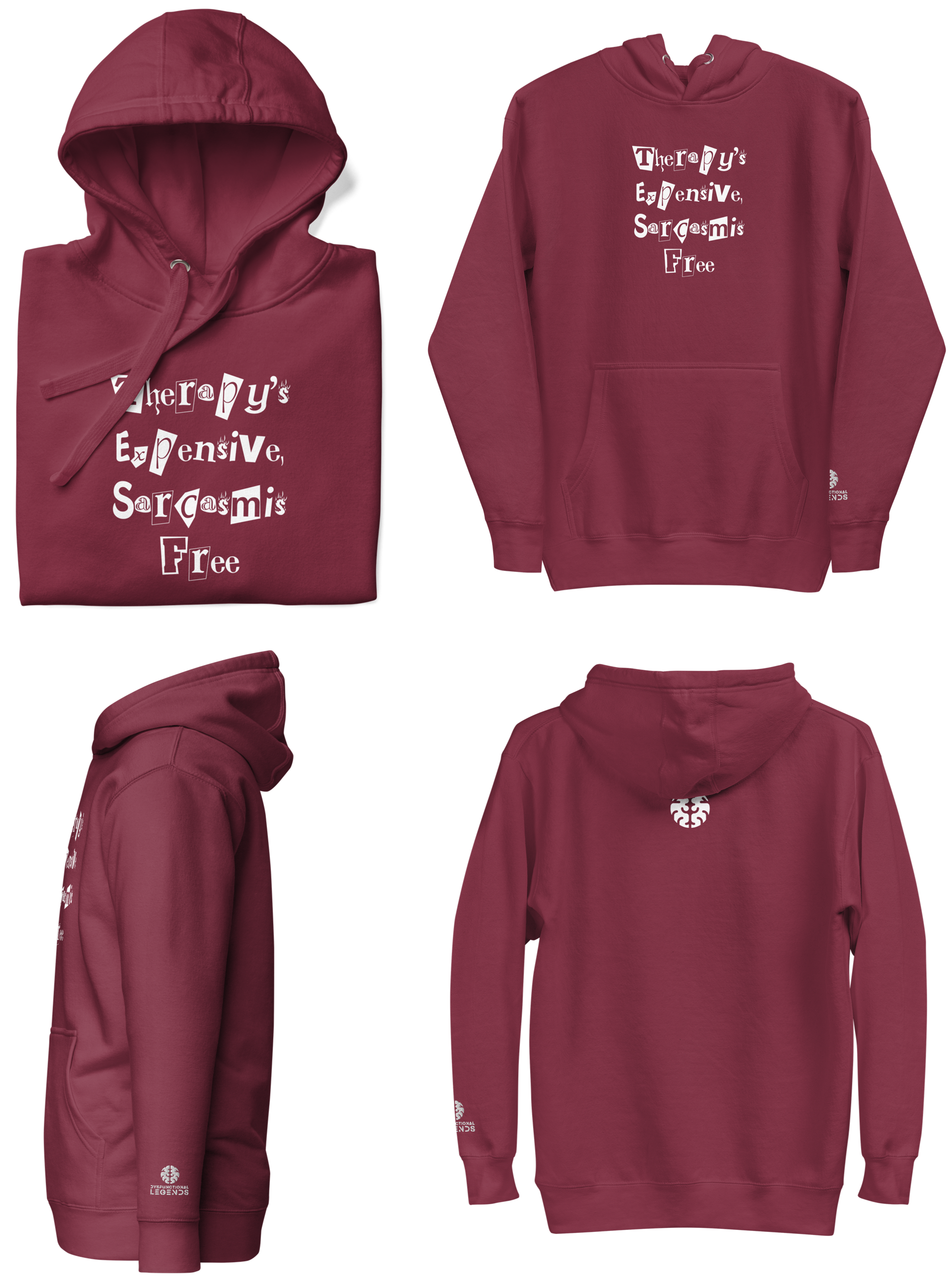 Maroon & White | Therapy's Expensive, Sarcasm is Free | DL Unisex Hoodie